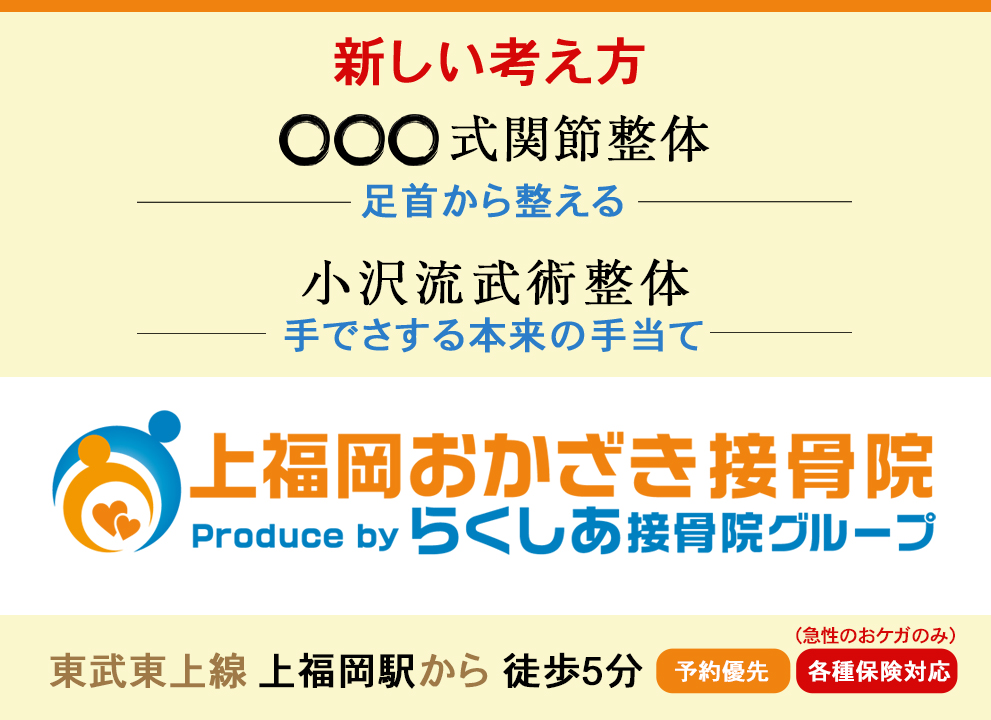 しかも上福岡おかざき接骨院の院長はこの道30年以上、15万人以上の身体を診てきた大ベテランなので安心!!